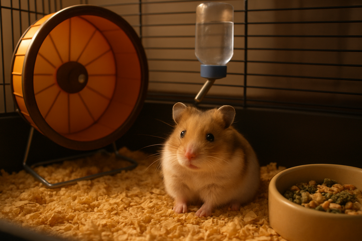 Add chew toys (wooden blocks, timothy hay sticks), tunnels, and things to explore. Hamsters are curious and intelligent — a bare cage with just a wheel is boring. Rotate toys every week or two to keep things interesting. Our enrichment toy guide has tested recommendations.